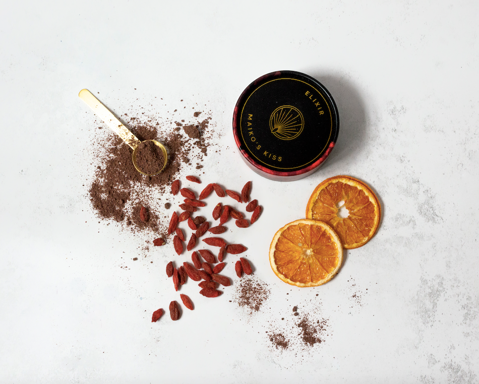 Deténgase y aprecie la frescura natural de las notas cítricas y de bayas del Kiss Elixir de Maiko, un impulso para su sistema inmunológico gracias a la rosa mosqueta y las bayas de Goji, ricas en vitamina C, que ayudan a prevenir los resfriados estacionales.