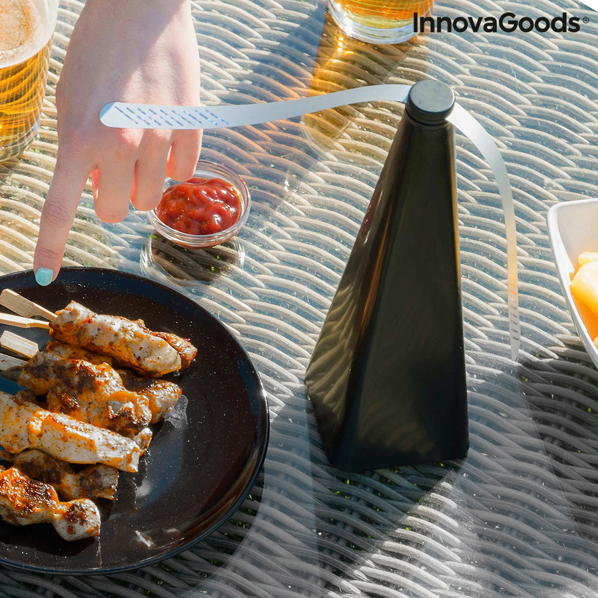 Un original espantamoscas ecológico ideal para espantar a las molestas moscas de forma sencilla, limpia y eficaz. Se puede utilizar en interiores y exteriores, integrándose perfectamente en la decoración por su diseño moderno y elegante. Una de sus grandes ventajas es que es respetuoso con el medio ambiente, ya que no contamina ni resulta perjudicial para la salud al no contener productos químicos ni tóxicos (ecofriendly). Además, es muy silencioso, por lo que su uso no causa ninguna molestia auditiva. Dispone de aspas flexibles con puntos holográficos reflectantes que ahuyentan a las moscas y a otros insectos voladores. Este ahuyentador ecológico es reutilizable, ligero y portátil, ya que funciona con pilas (2 x AA, no incluidas). No necesita cables ni enchufes, por lo que es muy fácil de usar y llevar a cualquier parte donde sea necesario.