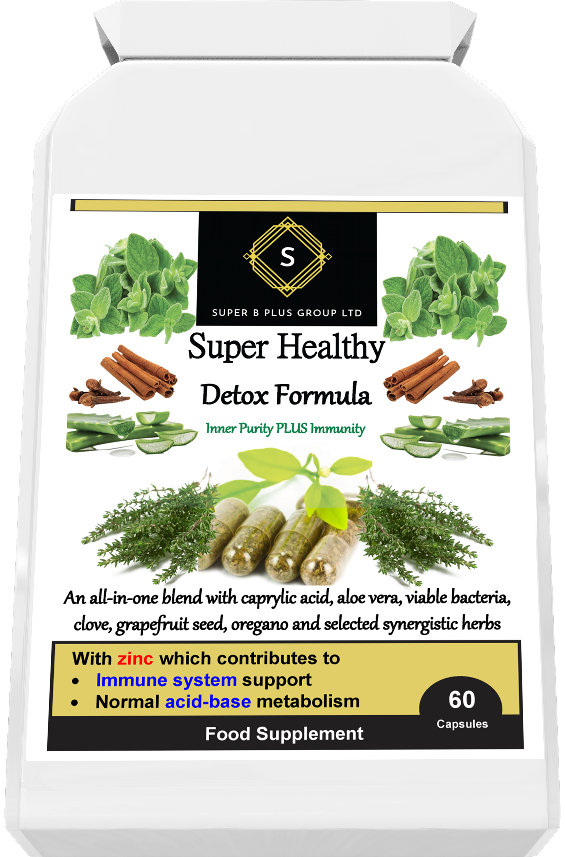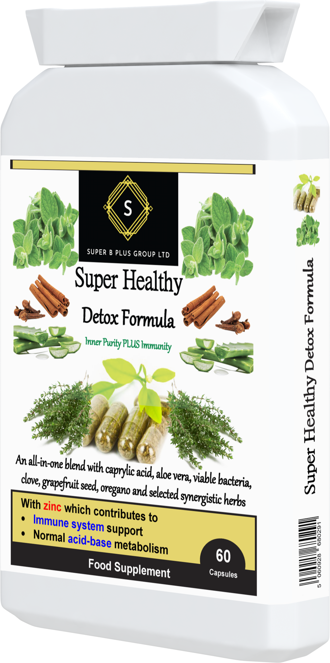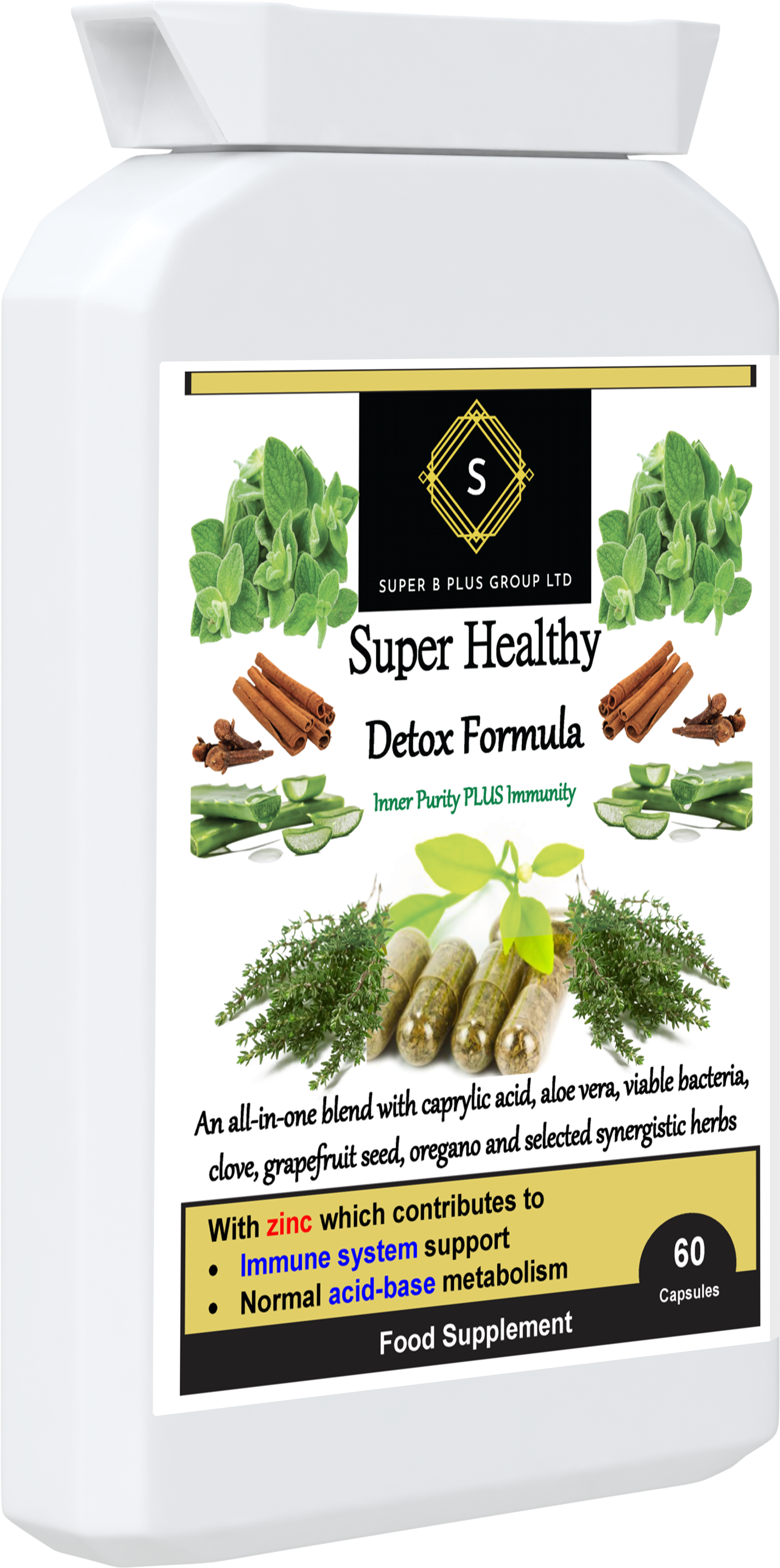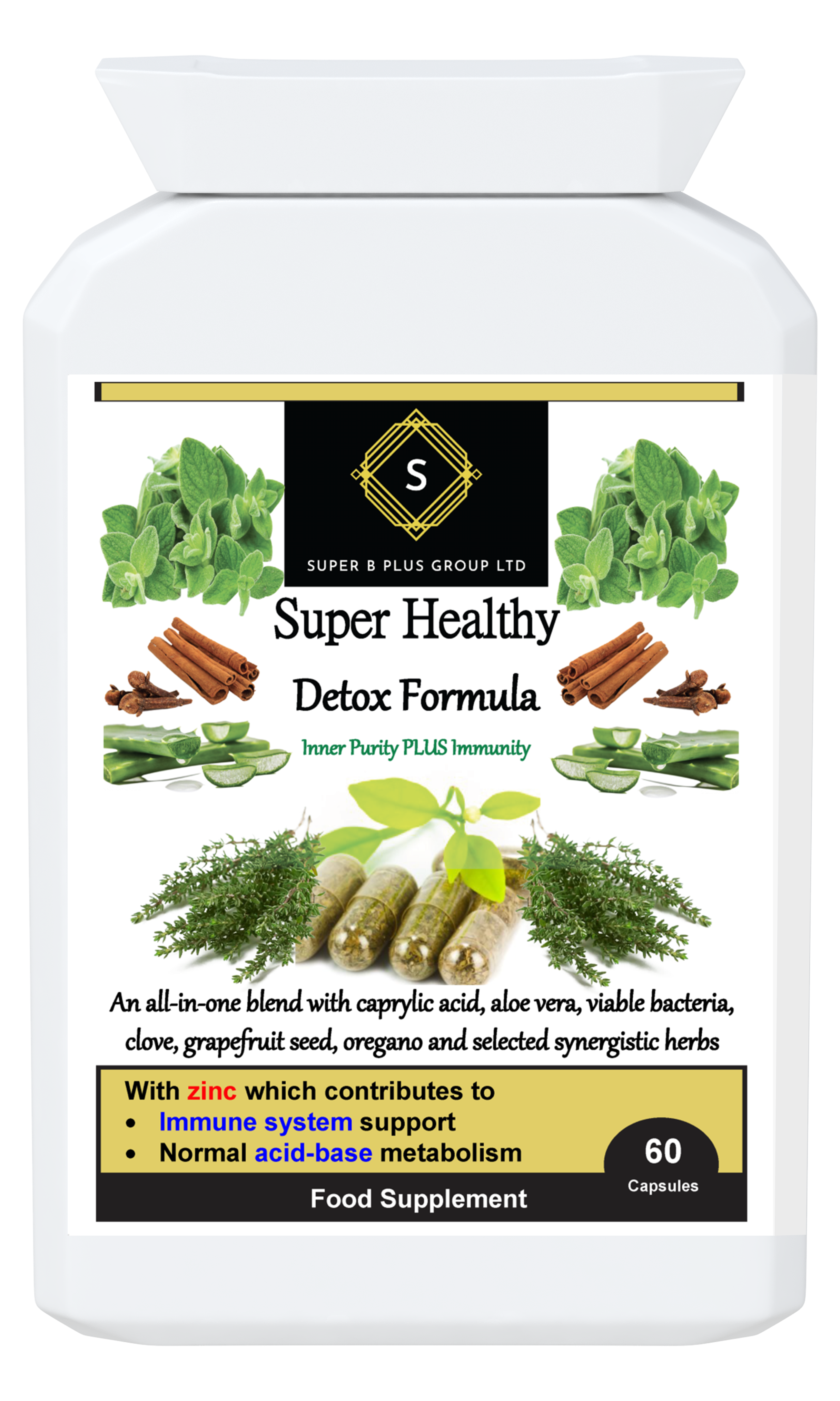 A diferencia de otros suplementos Detox, nuestras cápsulas Super Healthy Detox Formula también contienen zinc y extracto de aloe vera.