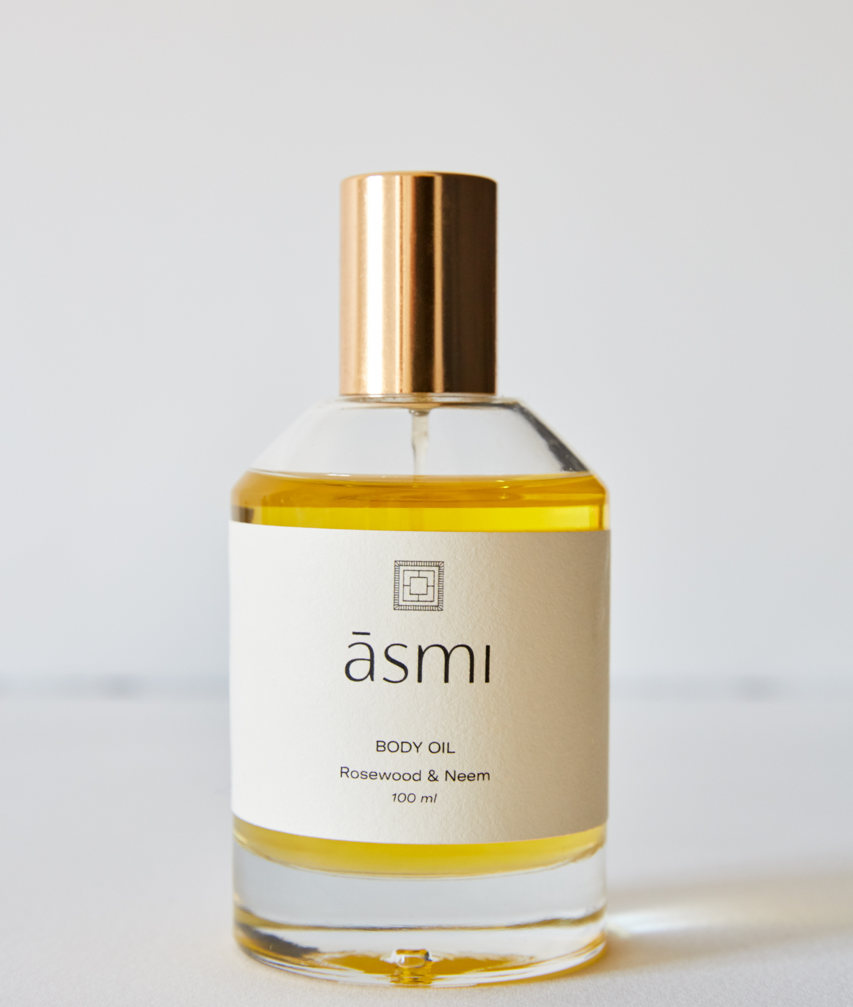 Rocíe en la palma de su mano varias veces. Calentar el aceite frotando las palmas de las manos. Masajee suavemente alrededor de su cuello y detrás de sus orejas, en su clavícula, hombros y antebrazos. Finalmente, coloque las palmas de las manos juntas frente a su cara. Tomar una respiración profunda Siente las notas molidas de palisandro y neem.
